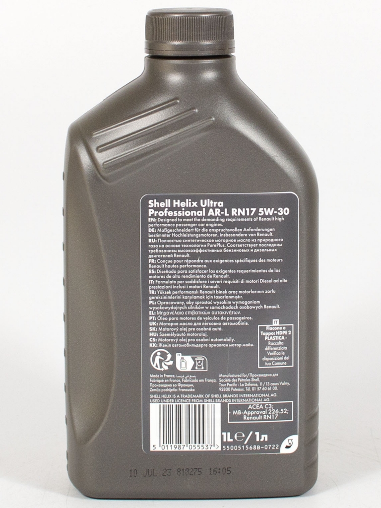 Масло SHELL 5W30 HELIX ULTRA PROFESSIONAL AR-L RN17 - это высококачественное синтетическое моторное масло, разработанное для обеспечения надежной работы современных двигателей. Оно обладает отличными защитными свойствами, что способствует увеличению срока службы вашего автомобиля. Масло соответствует стандартам RN17, что делает его идеальным выбором для автомобилей, требующих данного класса масла.