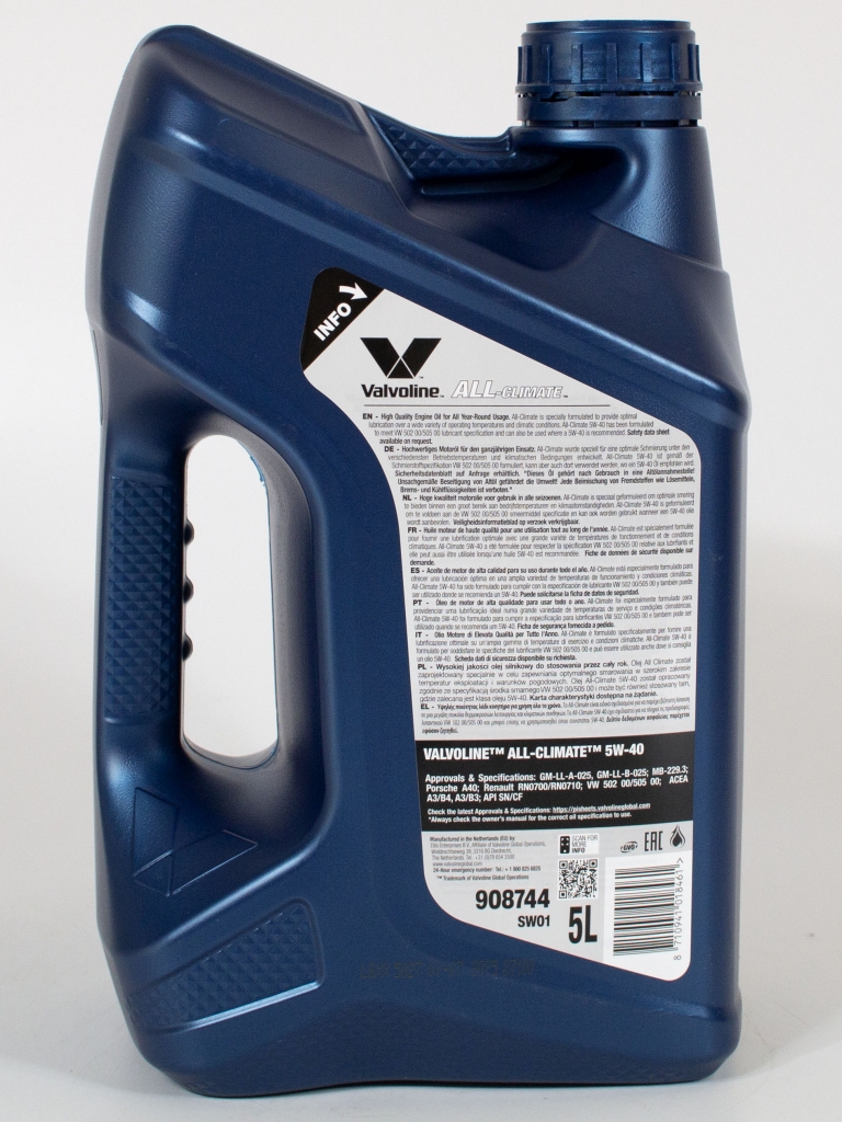 Главная / Моторные масла / Моторное масло Valvoline All Climate 5W-40, 5л