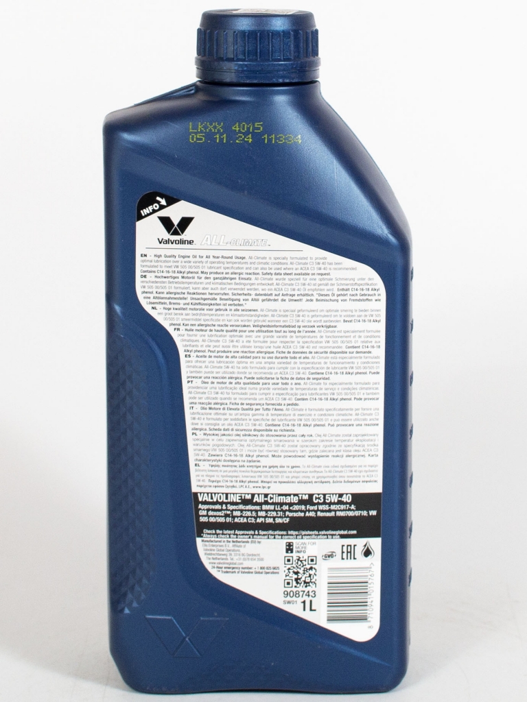 Главная / Моторные масла / Моторное масло Valvoline All Climate DPF C3 5W-40, 1л
